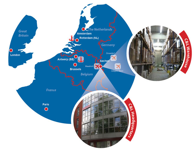 Aachen is located in the very west of Germany. Its infrastructure is very good due to its location in the border region of the Netherlands and Belgium. Several airports and harbours are close to Aachen as for example the airports in Maastricht, Dusseldorf and Cologne and also the harbours in Antwerp or Duisburg.